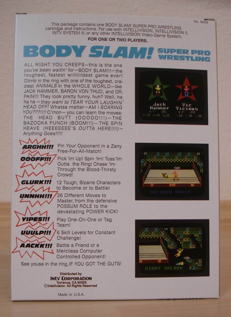 Body Slam - Super Pro Wrestling INTV - Reproduction Empty Box only. No Cartridge, manuals or overlays.The box will be shipped folded.