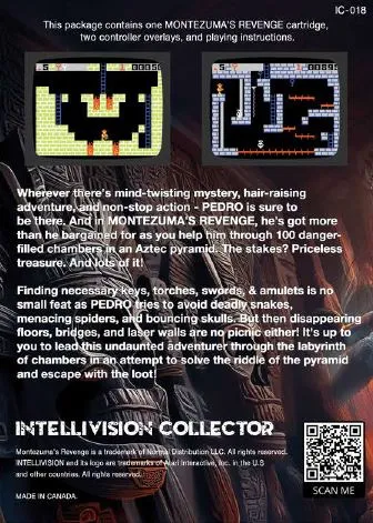 Wherever there's mind-twisting mystery, hair-raising adventure, and non-stop action - PEDRO is sure to be there. And in MONTEZUMA'S REVENGE, he's got more than he bargained for as you help him through 100 danger- filled chambers (all 9 levels are included) in an Aztec emperor's fortress. The stakes? Priceless treasure. And lots of it!